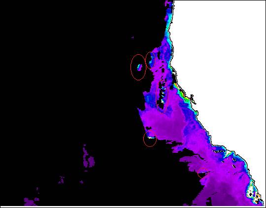 actually includes also land, pixels along land are also masked. Below is an