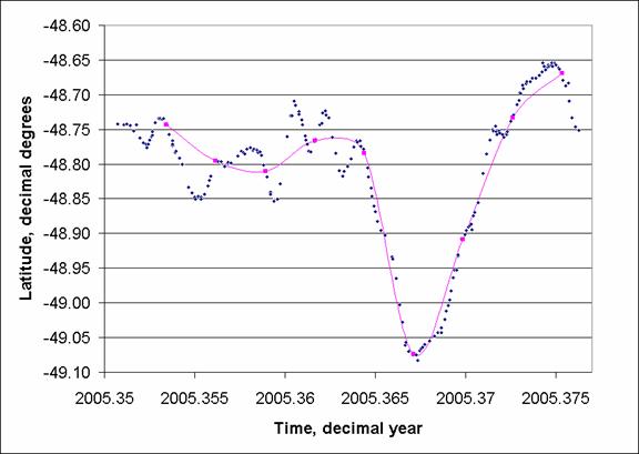 i.e. to each day at 0:00 GMT. A cubic spine is fitted separately through the