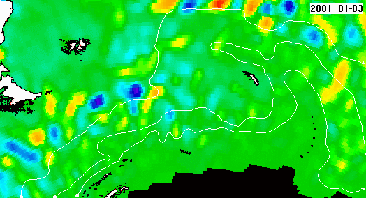 Weekly maps of Sea Level Anomaly (SLA) merged from TOPEX/POSEIDON, Jason and ERS-1/2 created by SSALTO/DUACS as part of the Environment and Climate EU Enact project (EVK2-CT2001-00117) and distributed by AVISO, with support from CNES